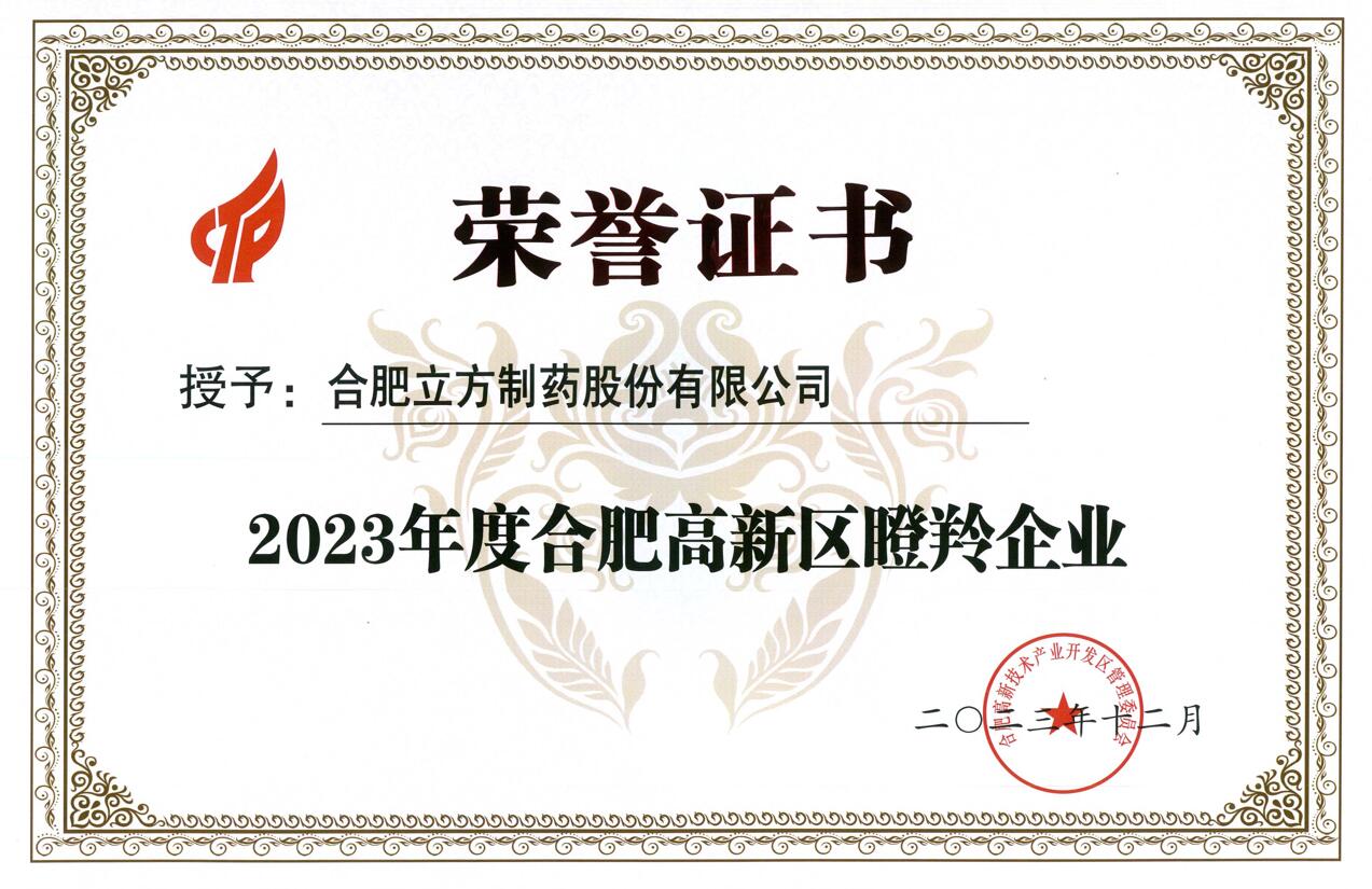 2023年度合肥高新區(qū)瞪羚企業(yè)